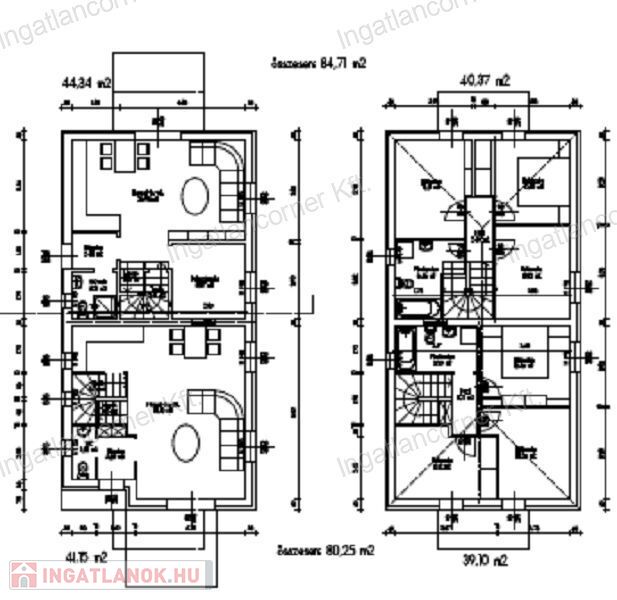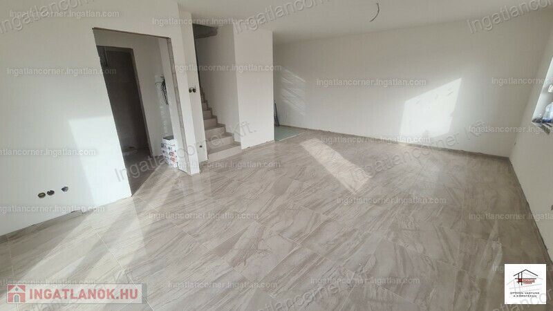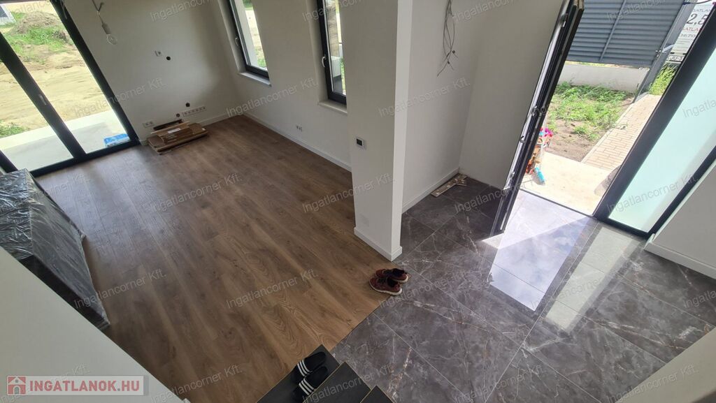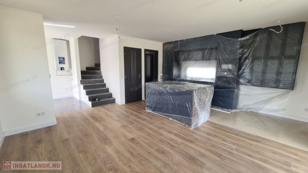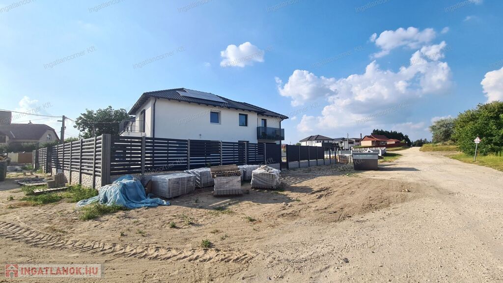 Az ingatlan első lakása alapterülete 86 m2 +5 m2 erkély, telekméret 205 m2 104 M Ft.