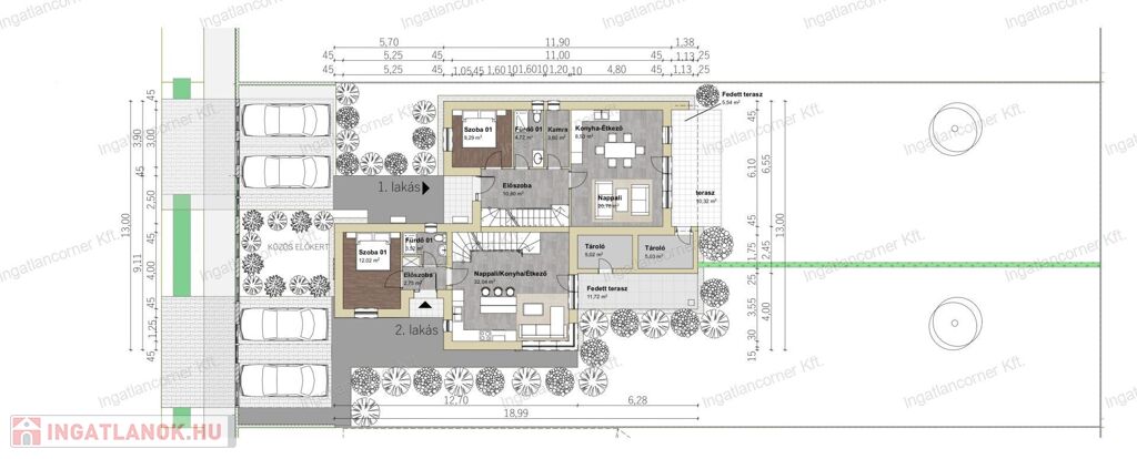 Az épület magas műszaki tartalommal készül, mai kornak és elvárásoknak megfelelően. A két lakás között DUPLA hang-gátló fal készül és külön kerül kiöntésre a födém is. Magas hangsúlyt fektettek a két lakás külön választására, hogy mindkettő lakó funkció önálló ház életérzését nyújtsa!