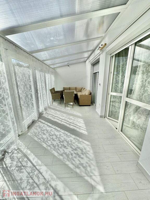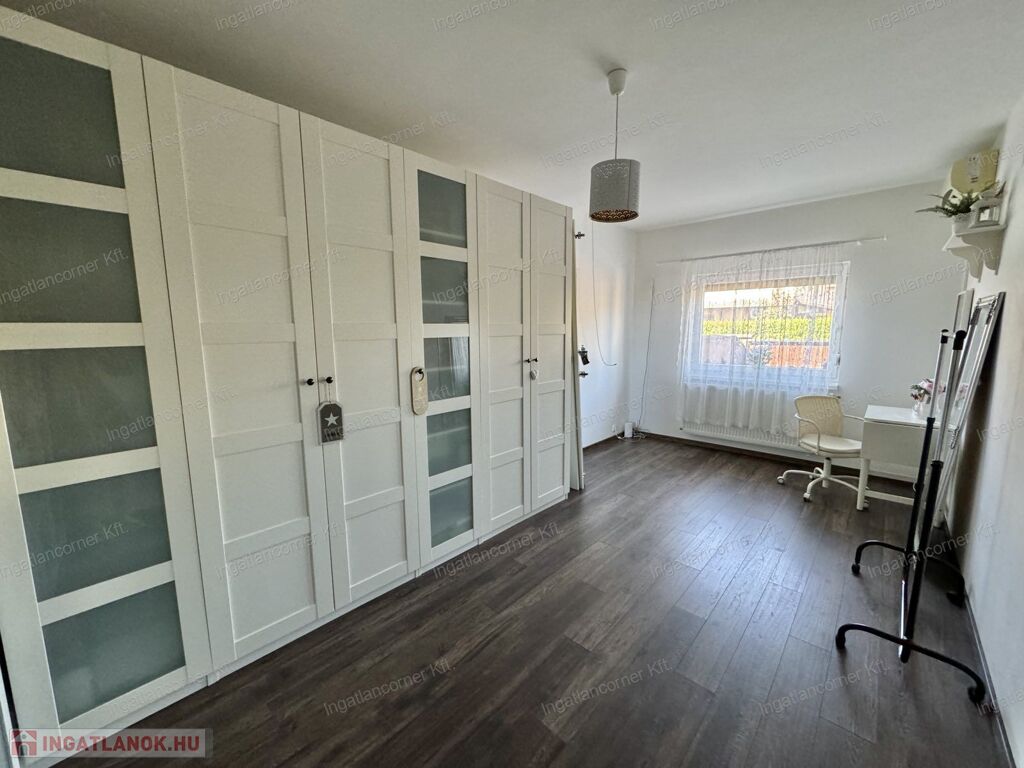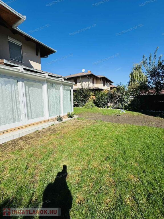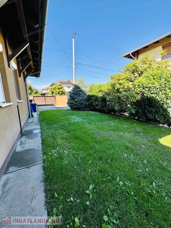 Az ingatlan területére két kapun keresztül is bejuthatunk. A telekre akár több gépkocsinak is lehetősége van beállni. A ház riasztórendszerrel van ellátva. Az ingatlan HATALMAS ablakai a hátsó kertre néznek. Az ablakokon szúnyogháló és redőny található.