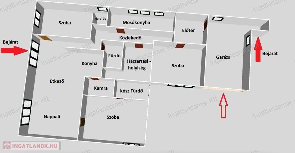 • Gardrób, mosókonyha, külön konyha