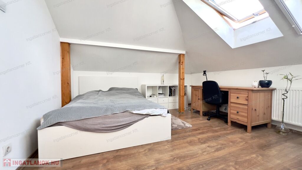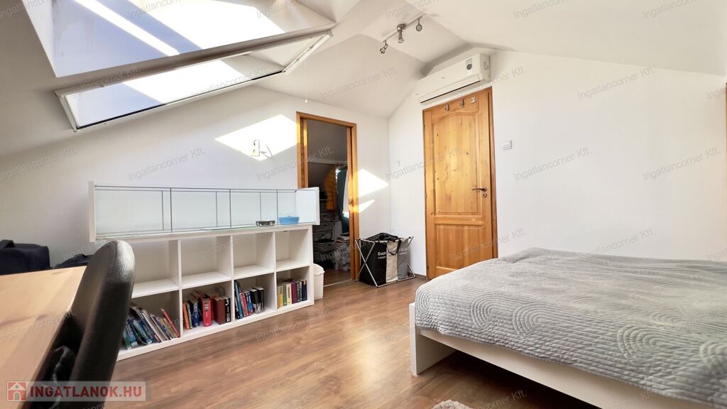 Az emelten 2 nagy méretű szoba ( egyik szoba KÖNNYEDÉN tovább osztható ), fürdőszoba - wc, gardrobe.
