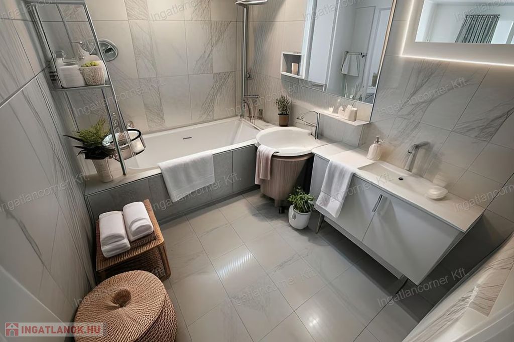 A meleg vízről egy ARISTON típusú gázbojler gondoskodik.