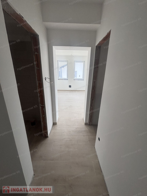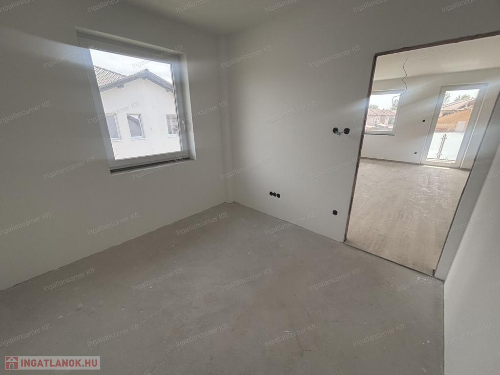 3, lakás nettó 60,77 m2 + 9,29 m2 terasz, nappali + 2 háló, 119 m2 telek, fan-coil klíma (a hálószobákban kiállás előkészítés), riasztó, kaputelefon, 2db parkoló